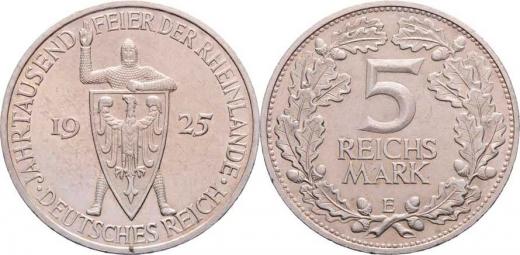 5 Marka 1925 E - 1000 let Porýní, KM.47 (Ag500), 24.975g, nep.hr., dr.rysky, patina