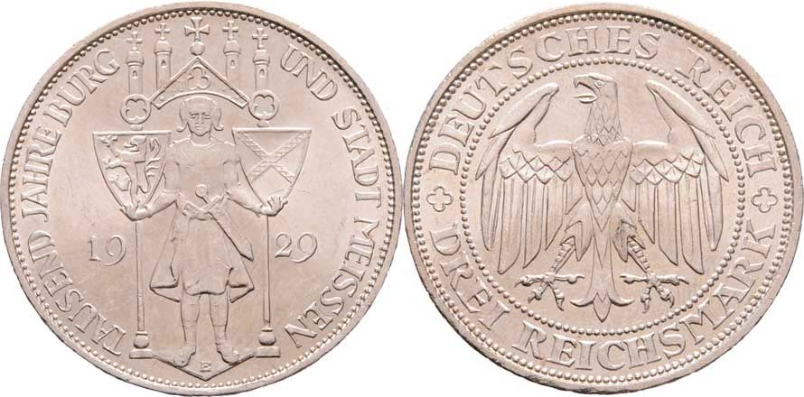 3 Marka 1929 E - Míšeň, KM.65 (Ag500), 14.941g, nep.hr., nep.rysky