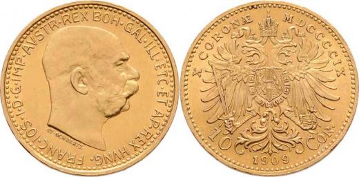 10 Koruna 1909-Schwartz, 3.388g,