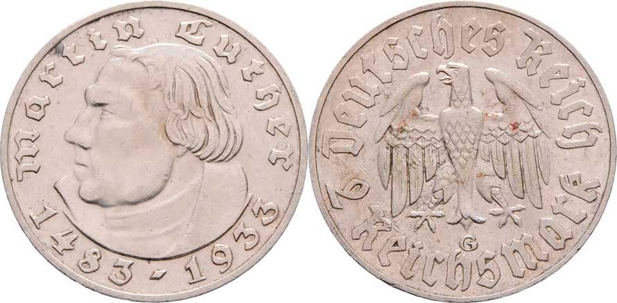 2 Marka 1933 G - Luther, KM.79 (Ag625, pouze 61.000 ks), 8.057g, nep.hr., nep.rysky, skvrnky