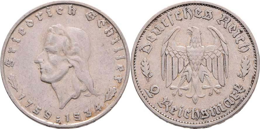 2 Marka 1934 F - Schiller, KM.84 (Ag625), 7.914g, nep.hr., nep.rysky, patina