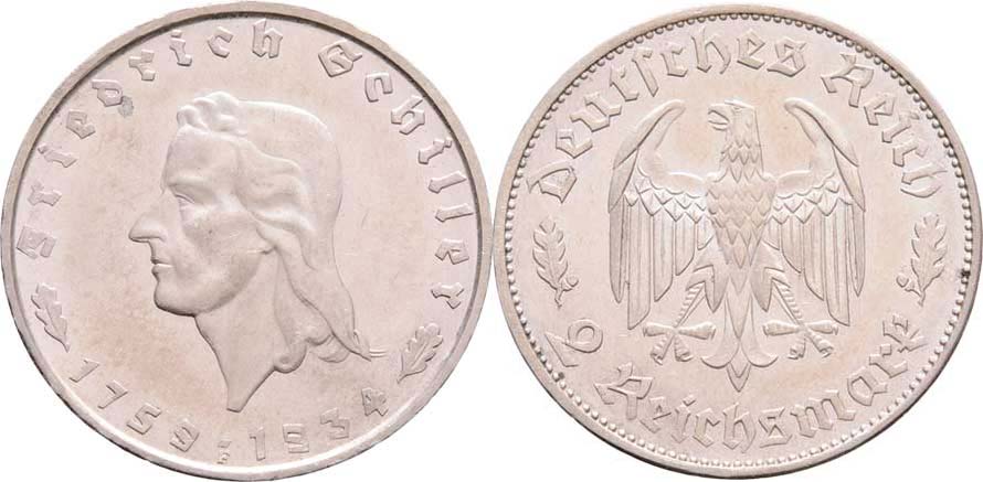 2 Marka 1934 F - Schiller, KM.84 (Ag625), 7.969g, nep.hr., nep.rysky, téměř