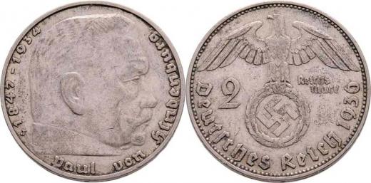 2 Marka 1936 J - Hindenburg, KM.93 (Ag625), 8.016g, dr.hr., dr.rysky, patina RR!