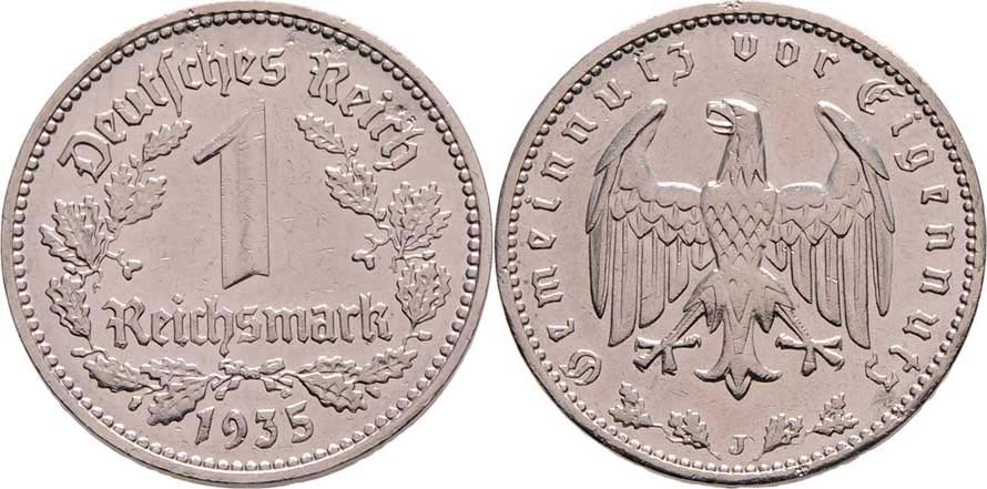 Marka 1935 J, KM.78 (Ni), 4.759g, dr.hr., dr.rysky, téměř R!