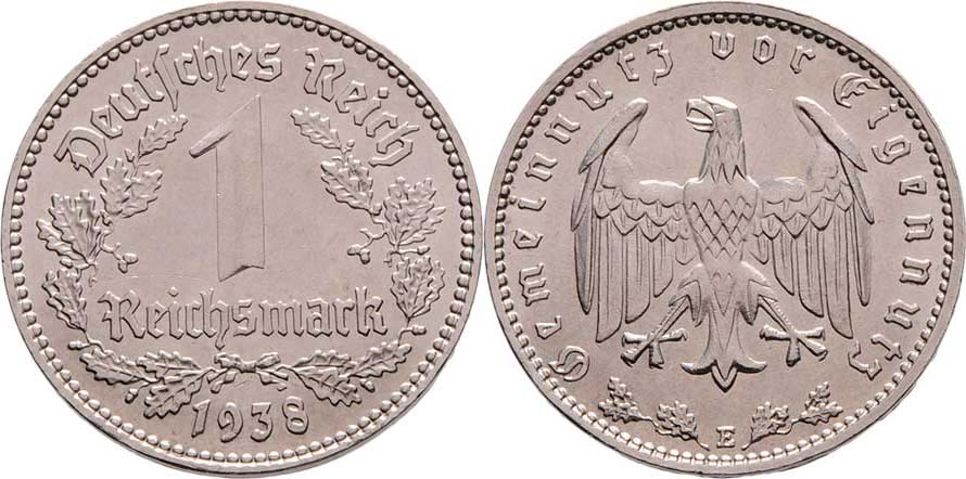 Marka 1938 E, KM.78 (Ni), 4.789g, nep.hr., nep.rysky, téměř R!