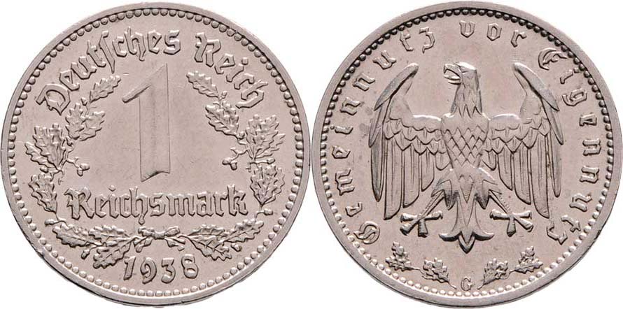 Marka 1938 G, KM.78 (Ni), 4.805g, nep.hr., nep.rysky, téměř R!