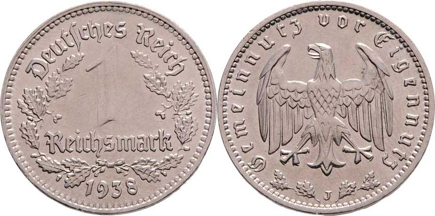 Marka 1938 J, KM.78 (Ni), 4.818g, nep.hr., nep.rysky, téměř R!