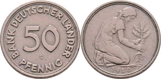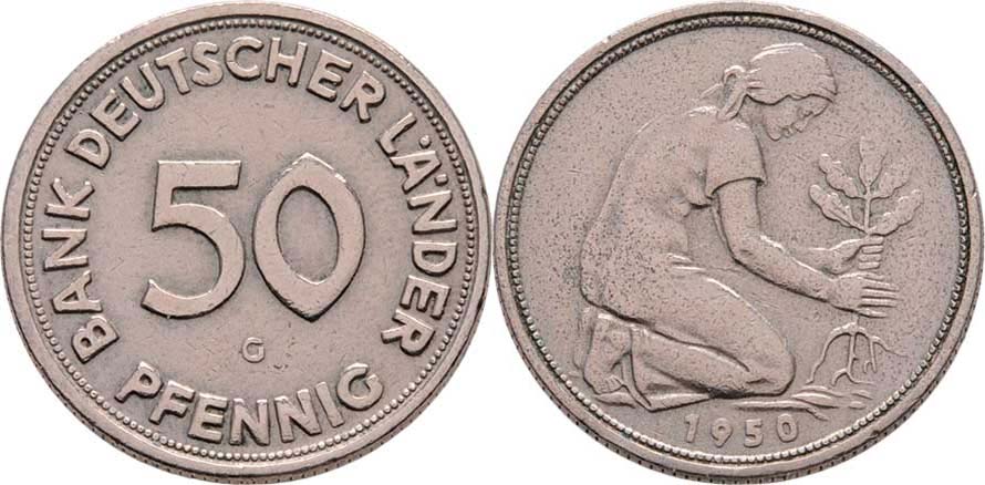 50 Fenik 1950 G - Bank deutsche Länder, KM.104 (CuNi), 3.511g, dr.hr., dr.rysky, pěkná patina RR!