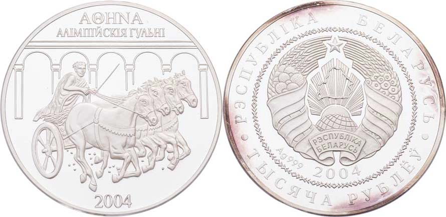 1000 Rublů 2004 - LOH Atény, KM.74 (Ag999, 1000g, raženo pouze 650 ks), patina, kapsle RRR!