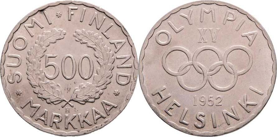 500 Marka 1952 H - XV.LOH Helsinki, KM.35 (Ag500), 11.871g, nep.hr., nep.rysky, pěkná patina, téměř R!