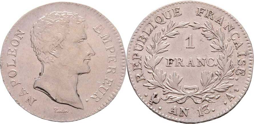 Frank, rok 13 (= 1805) A, Paříž, KM.656.1, 4.979g, nep.hr., nep.rysky
