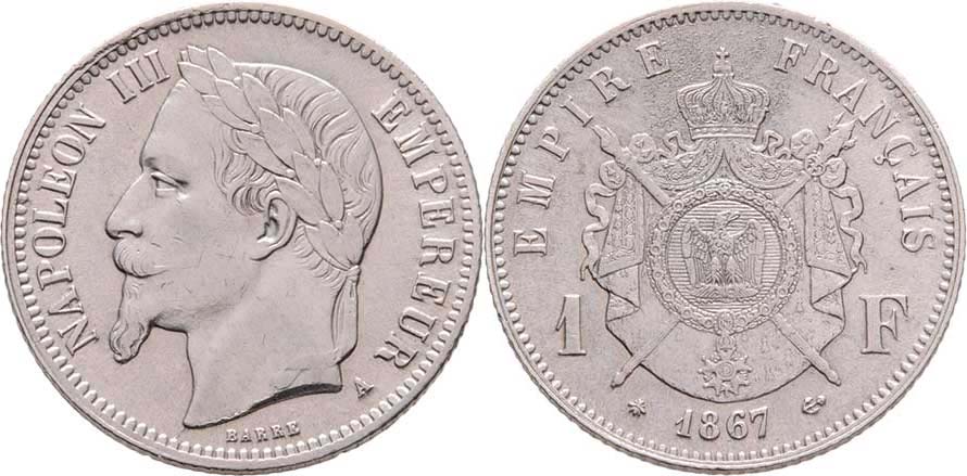 Frank 1867 A, Paříž, KM.806.1 (Ag835), 4.970g, nep.hr., nep.rysky