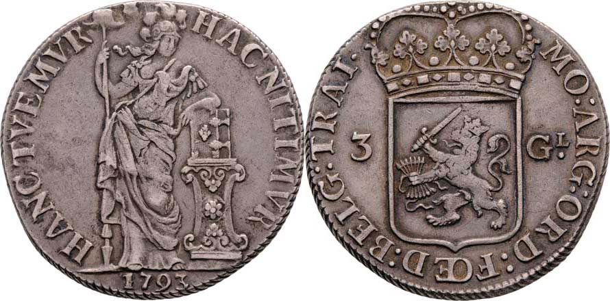 3 Gulden = 60 Stuiver 1793, KM.117 (Ag920), 31.568g, nep.hr., nep.rysky, pěkná patina R!