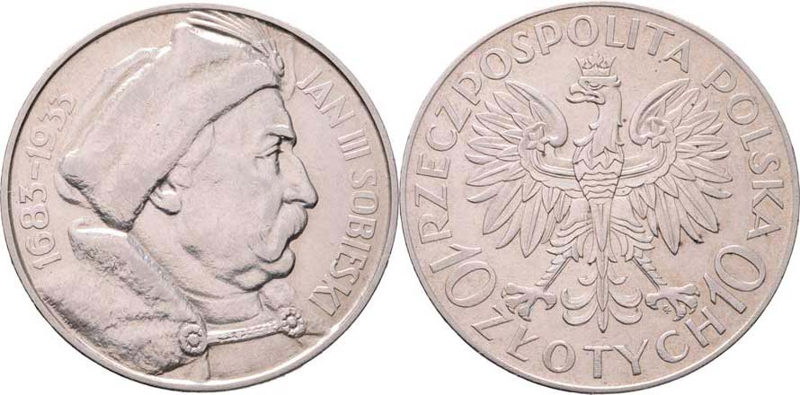 10 Zlotých 1933 - Jan III. Sobieski - na 250 let vítězství nad Turky, Y.23 (Ag750, pouze 300.000 ks), 22.041g, nep.hr., nep.rysky R!