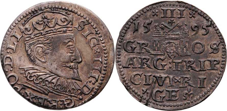 3 Groš 1595, Kop.8191, Sa.5869 (obr.3020), 2.195g, nep.exc., nep.nedor., 2x dr.škr., pěkná patina