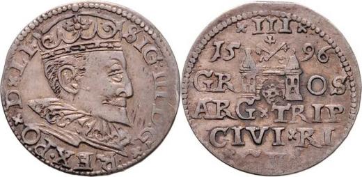 3 Groš 1596, Kop.8192, Sa.5870 (obr.3020), 2.440g, krajový střížek, nep.exc., nep.nedor., pěkná patina