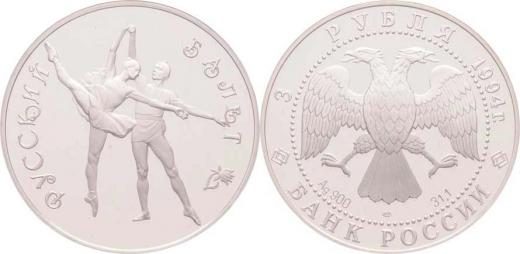 3 Rubl 1994 - Ruský balet, Y.405 (Ag900, 34.56g, pouze 40.000 ks), kapsle