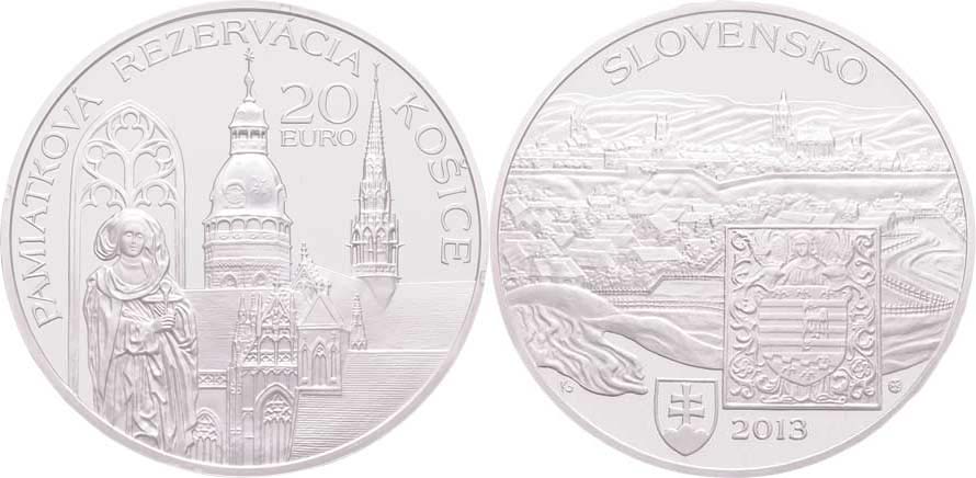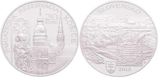 20 Euro 2013 - památková rezervace Košice, KM.129 (Ag925, 33.63g, cca 10.000 ks), kapsle, etue, certifikát, reklamní text R!