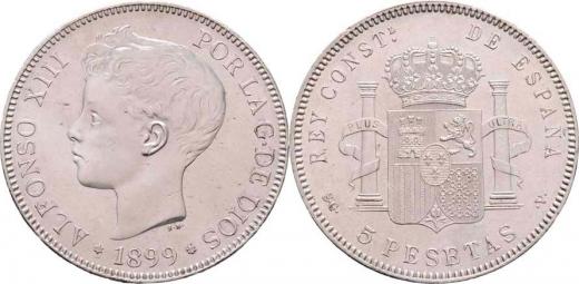 5 Peseta 1899/1899 SG-V, Madrid, KM.707 (Ag900), 24.882g, dr.hr., vlas.rysky, pěkná patina