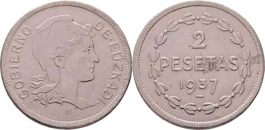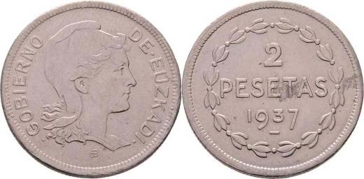 2 Peseta 1937 bz, Brusel, KM.2 (Ni), 7.988g, vada materiálu, nep.hr., nep.rysky