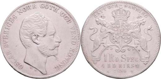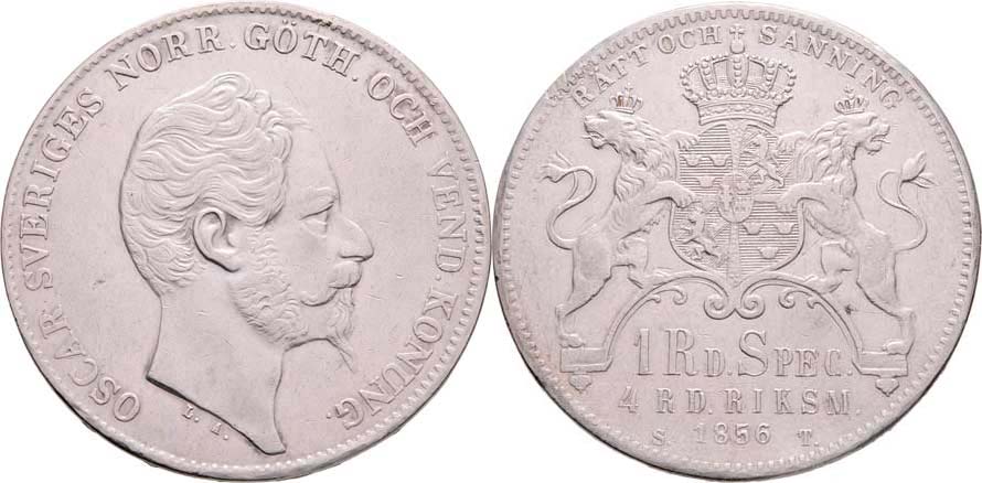 4 Riksdaler 1856 ST, KM.689 (Ag750), 34.004g, opravená hrana, dr.rysky, pěkná patina R!