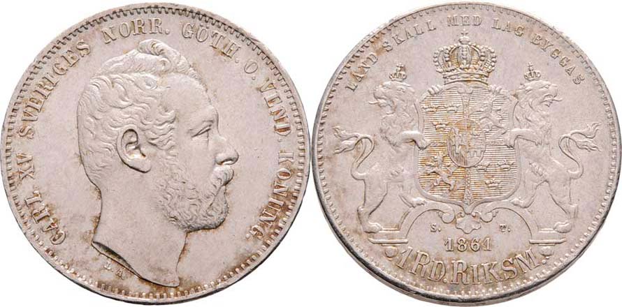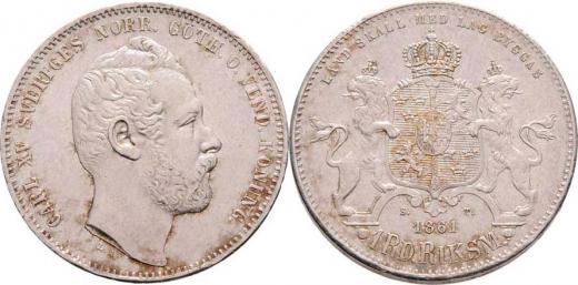 Riksdaler 1861 ST, KM.711 (Ag750), 8.452g, nep.hr., nep.rysky, pěkná patina, téměř R!