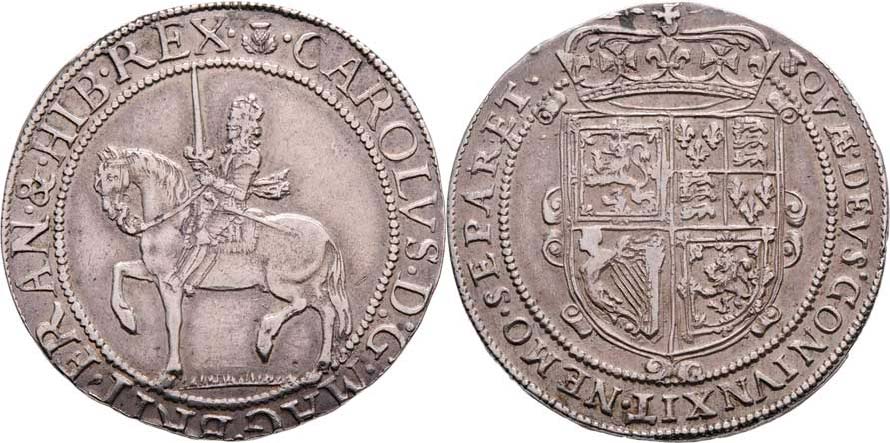 30 Shilling (1/2 Crown) 1644, zn."květ bodláku", KM.88, 14.881g, nep.nedor., nep.exc., patina RR!