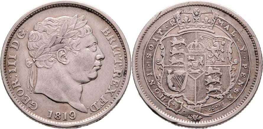 Shilling 1819, SCBC.3790, KM.666 (Ag925), 5.593g, dr.hr., nep.rysky, pěkná patina