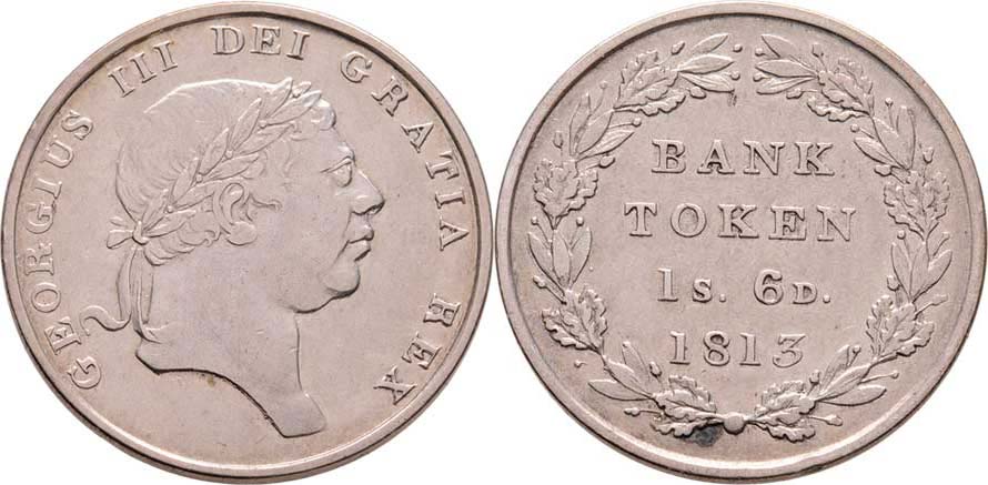 18 Pence 1813 - token Bank of England, SCBC.3772, KM.Tn3 (Ag925), 7.313g, nep.hr., nep.rysky, patina R!