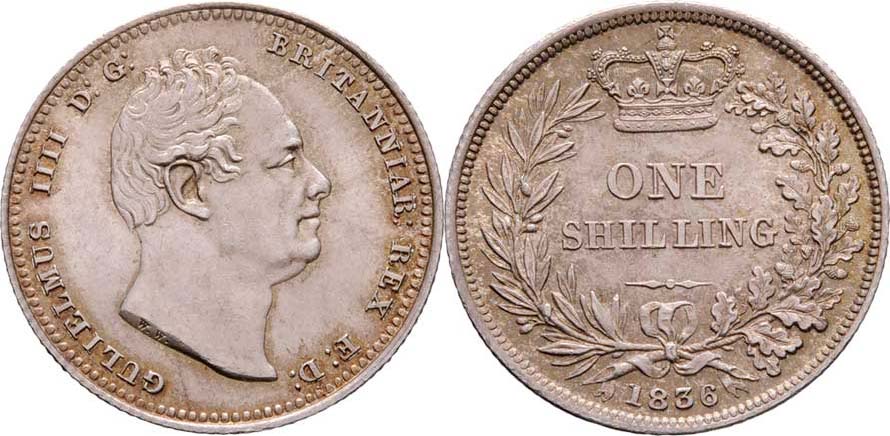 Shilling 1836, KM.713, SCBC.3835 (Ag925), 5.635g, krásná patina