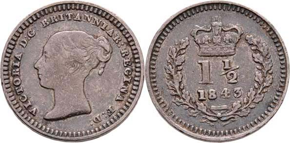 1.5 Pence 1843, SCBC.3915, KM.728 (Ag925), 0.700g, nep.hr., nep.rysky, pěkná patina R!
