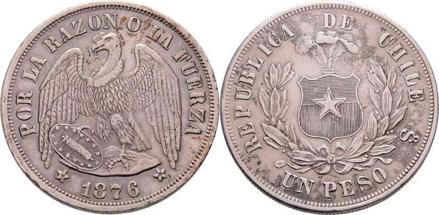 Peso 1876 So, KM.142.1 (Ag900), 24.968g, dr.hr., nep.rysky, pěkná patina, téměř