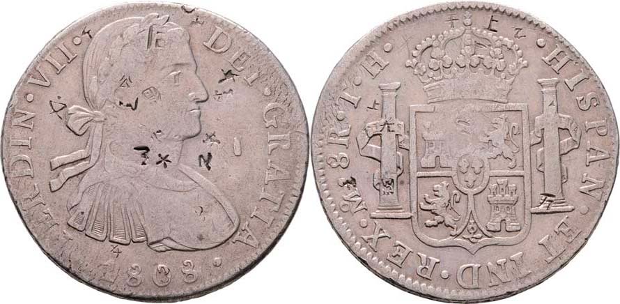 8 Real 1808 Mo-TH, Mexiko, KM.110 (Ag903), 26.562g, nep.vady materiálu, nedor., mnoho drobných čínských kontramarek, dr.hr., dr.rysky, pěkná patina