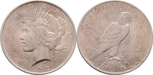 Dolar 1922 - Mírový, KM.150 (Ag900), 26.664g, nep.hr., nep.rysky, pěkná patina