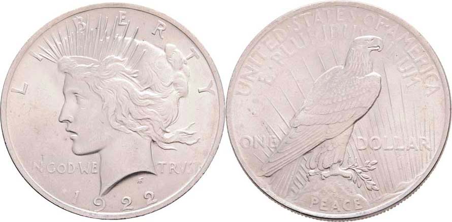Dolar 1922 - Mírový, KM.150 (Ag900), 26.722g, nep.hr., nep.rysky, pěkná patina, téměř