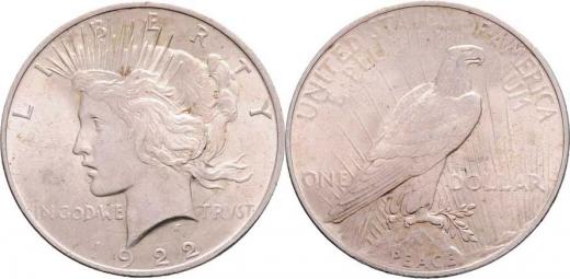 Dolar 1922 - Mírový, KM.150 (Ag900), 26.772g, dr.hr., nep.rysky, patina