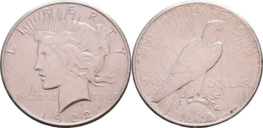 Dolar 1922 S - Mírový, KM.150 (Ag900), 26.646g, dr.hr., dr.rysky, patina