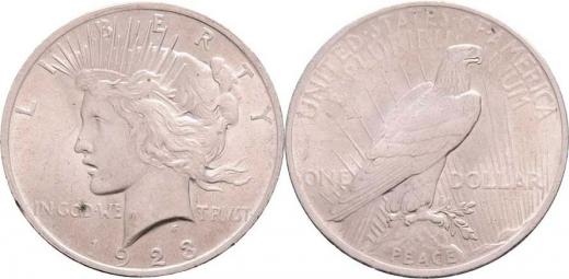Dolar 1923 - Mírový, KM.150 (Ag900), 26.743g, hr., vl.rysky, skvrnka, patina