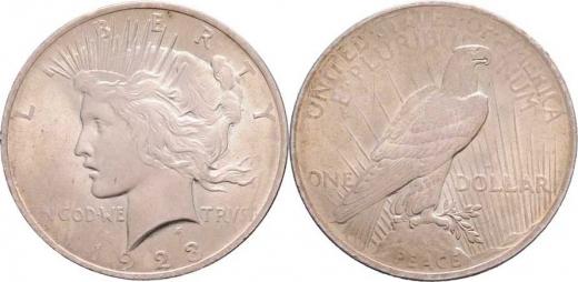 Dolar 1923 - Mírový, KM.150 (Ag900), 26.737g, nep.hr., nep.rysky, pěkná patina, téměř