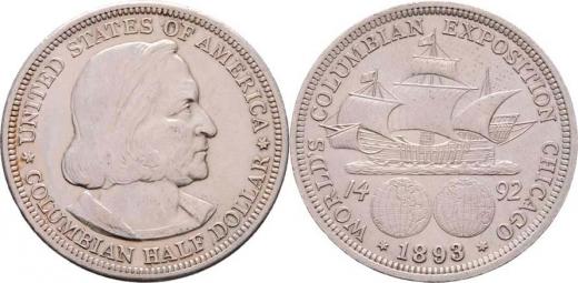 1/2 Dolar 1893 - Kolumbovská výstava, KM.117 (Ag900), 12.516g, nep.hr., nep.rysky, pěkná patina