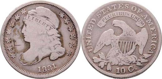 10 Cent 1831 - hlava Liberty, KM.48 (Ag892), 2.503g, škr., dr.hr., dr.rysky, patina