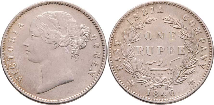 Rupie 1840 - Sign.WW - 28 vavřínových plodů, KM.458.2 (Ag917), nep.rysky, pěkná patina