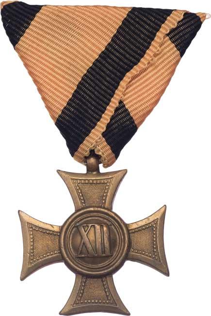 Služební kříž za 12 let - typ 1867, Marko.374a, VM.2/8-1869-E, větší medailon bez věnce (17 mm), nepůvodní stuha