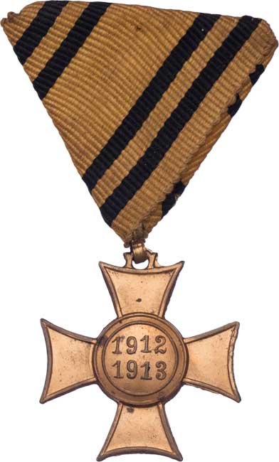 Mobilizační kříž 1912-1913 - letop.vyvýšené, zlacený bronz, VM.2/13, Marko.411a, vada materiálu v Rv., nep.hr., původní stuha