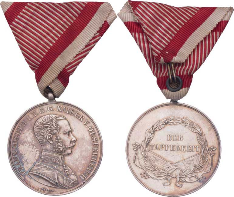 Velká stříbrná medaile za statečnost, Marko.230a, VM1.5-X-d, vydání z let 1914 - 1917, Sign.Leisek, punc.Ag, nep.hr., nep.rysky, původní válečná stuha