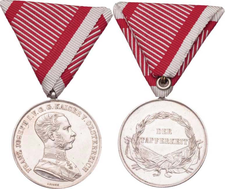Velká stříbrná medaile za statečnost, Marko.230a, VM1.5-X-d, vydání z let 1914 - 1917, Sign.Leisek, puncované Ag, dr.hr., vl.rysky, nepův. válečná stuha