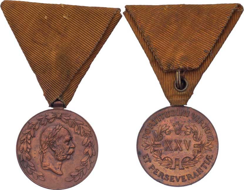 Hasičská a záchranářská medaile za 25 let služby, VM.36a, Marko.333, hr., nep.rysky, původní ušpiněná stuha