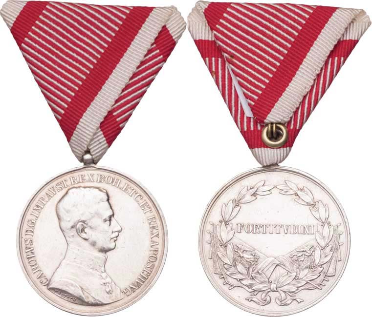 Velká stříbrná medaile za statečnost, Marko.234a, VM1.5-XII-C, Sign.Kautsch, Punc."A", vydání z let 1917 - 1918, nep.hr., nep.rysky, nepůvodní stuha