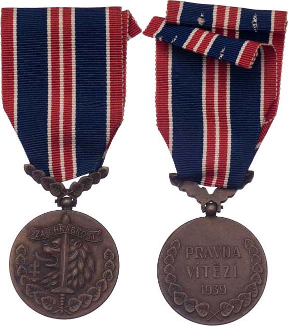 Medaile Za chrabrost před nepřítelem, VM.12-A-1, londýnské vydání z let 1940 - 1941, slovenský nápis, původní stuha