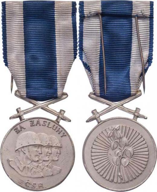 Stříbrná vojenská medaile Za zásluhy - pražské vydání, postříbřený bronz, VM.13-I-B, původní stuha, dvě malé stužky, miniatura na jehle, poškozená etue